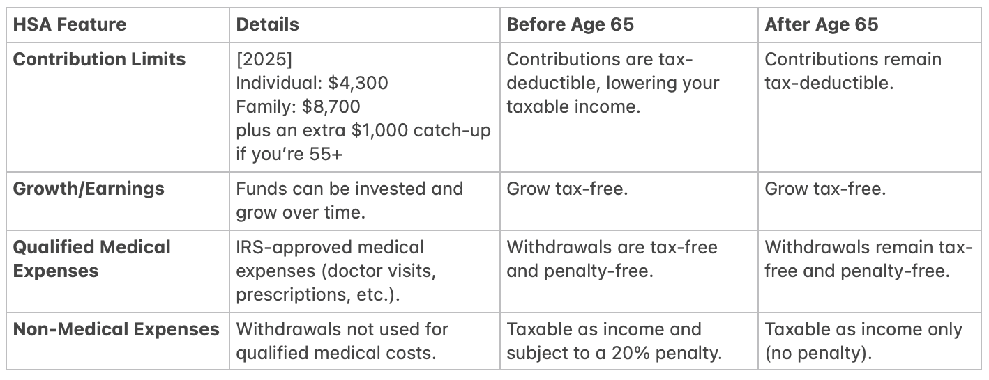 Tax-Free Withdrawals: Spend on healthcare anytime without paying taxes—seriously, anytime!